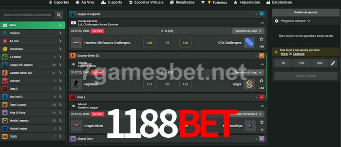 O 1188Bet oferece uma grande seleção de opções de apostas em e-sports com probabilidades competitivas
